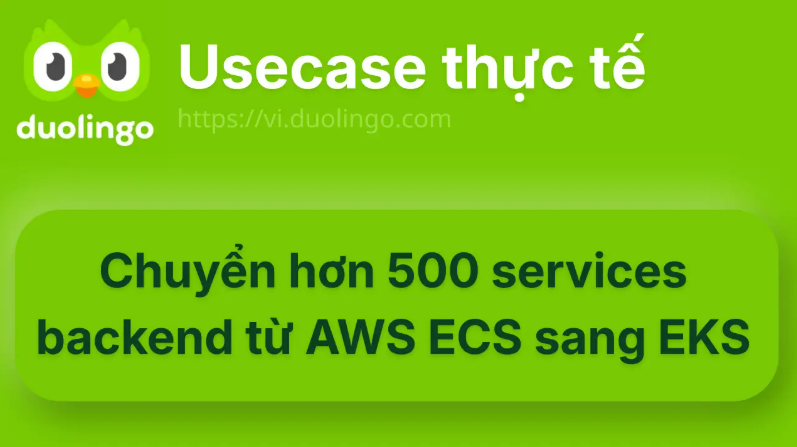 Thông tin tham khảo tại : https://l.facebook.com/l.php?u=https%3A%2F%2Fdevops.vn%2Fposts%2Fduolingo-chuyen-hon-500-services-backend-tu-aws-ecs-sang-eks%2F%3Ffbclid%3DIwZXh0bgNhZW0CMTAAYnJpZBExcmJaaDQ1Z2MxS3BqcFJHRXNydGMGYXBwX2lkEDIyMjAzOTE3ODgyMDA4OTIAAR73yTyvM92HH6gFFeSm8Fcj1pS3XZdAv-2xNjpYkthRxT5B-Sju7GIZcJxJIg_aem_hoBgLBGElH7uBBox_Ak76A&h=AT4nB_Ie6wrqzcO_dnMdnhmqzMUlmAcFWnySGnp5k5kIXDvd75sDDWtxQPXjwoy1FtuaEpN7vULL7NCa23fd9iKCofSb-5AOoiW_cR2Ih3DOKZv1JpVrVzlK3DOlelHuOPyYJz7uNSuWcvuD&__tn__=R]-R&c[0]=AT7sC_NGobX7AcqQL05MnWwOl2U3JSvXN0t25awsGe8k_YvB1e1BVpye_ZJjJPsQZ9v__91OYJTaj_tdqCuqWWQZUw3Q7YhYkESH9Ln-ufn2SRfNwUu8Svlk-Cnlz8Jn2Zl7nvpzLLtfizONIydv8IhUttiRa4Bcc4nD6WlkxlPmIgLKXiakxb3Tz_adiBDwGyk