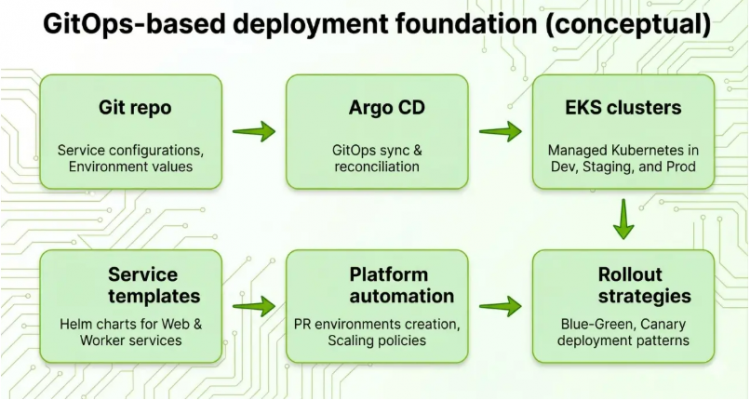 • Các chiến lược triển khai được chuẩn hóa thành cơ chế dùng chung: các mô hình như blue-green, rolling, canary tăng dần có thể được chuẩn hóa thành quy trình chung, thay vì phụ thuộc vào thao tác thủ công ở từng nhóm.